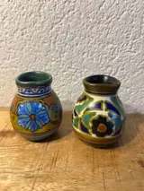 Twee leuke vaasjes gemaakt bij de Zuid-Holland fabriek te Gouda het ene vaasje in 1927 en het andere vaasje in 1922