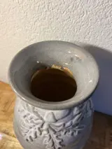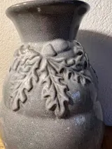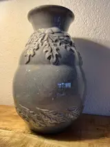 Mooie vaas met een bladeren reliëf gemaakt bij de zuid Holland fabriek te Gouda omstreeks 1930/1949
