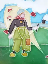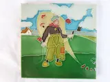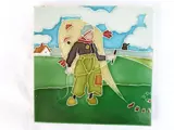 Twee Art Nouveau tegels met daarop een jongen die vliegert gemaakt door R.N. Richards in het Verenigd Koninkrijk.