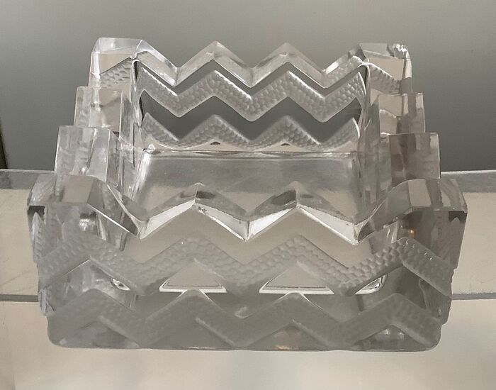 Vierkante asbak van R. Lalique SUDAN gegoten wit glas. Herkomst: Frankrijk. Periode: SUDAN-model uit 1934. Afmetingen: 11cm x 11cm. 4,9 cm hoog. Conditie: redelijk goed intensief gebruikt vertegenwoordigt kleine schokken - zie 2 foto's aan het eind. Verzending: Colissimo