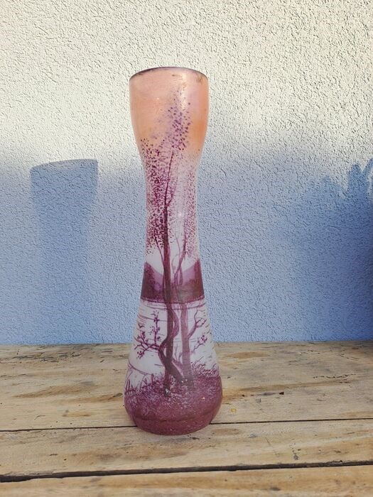 Mooie franse glazen vaas in de massa beschilderd of getint, ik weet het niet. In goede staat, enkele gebruikssporen, niets ernstigs. Vooroorlogs werk