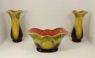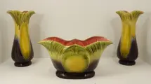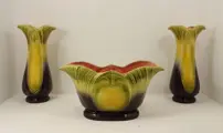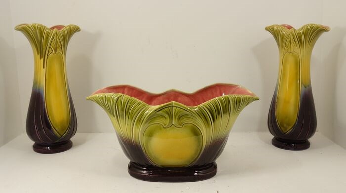 Zeldzame garnering met een plantenbak en een paar vazen uit de art nouveau-periode 1895 1900