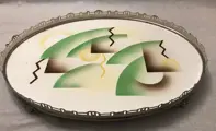 Groot ovaal Art Deco dienblad met een fraai gestileerd kleurig Spritzdecor.