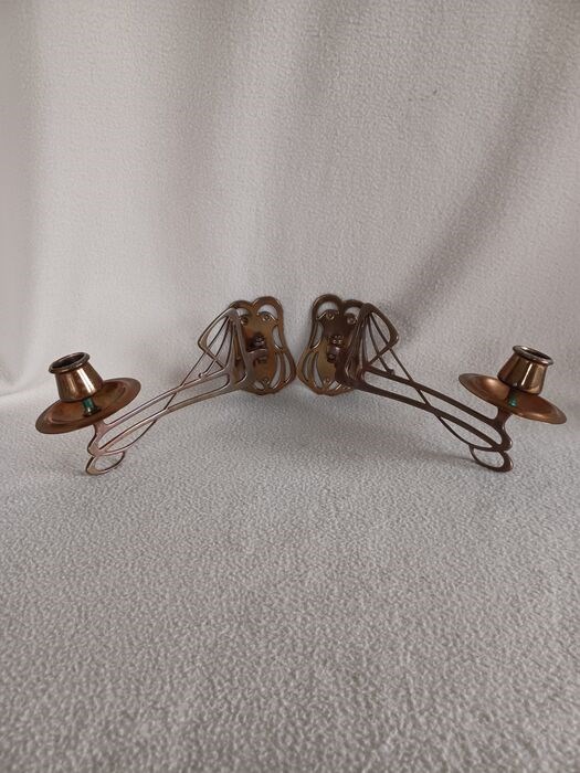 Stel prachtige identieke Art Nouveau messing piano / wand kandelaars