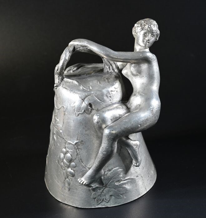 Art Nouveau tafelbel met een naakte vrouw, gesigneerd "Jouant" (Auguste Jules Alphonse Jouant, *19.06.1863 in Parijs, overleden 1921). Zonder kloppers.