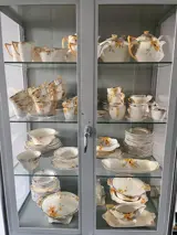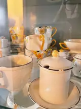 200-delig servies van Crown Ducal ‘Sunburst’ 2649. In uitstekende staat. Origineel. Oranje/geel/zwart bloemen motief.