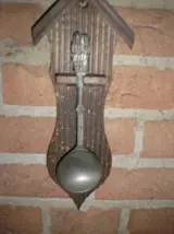 - Rek met 6 lepels, tin of lood, materiaal is zacht