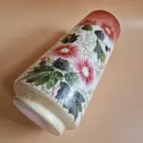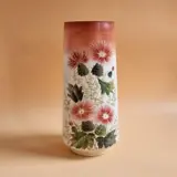 Witte opaline vaas met polychroom emaille decoratie van bloemen (Distels), handbeschilderd, in de Art Nouveau stijl van de 19e eeuw.