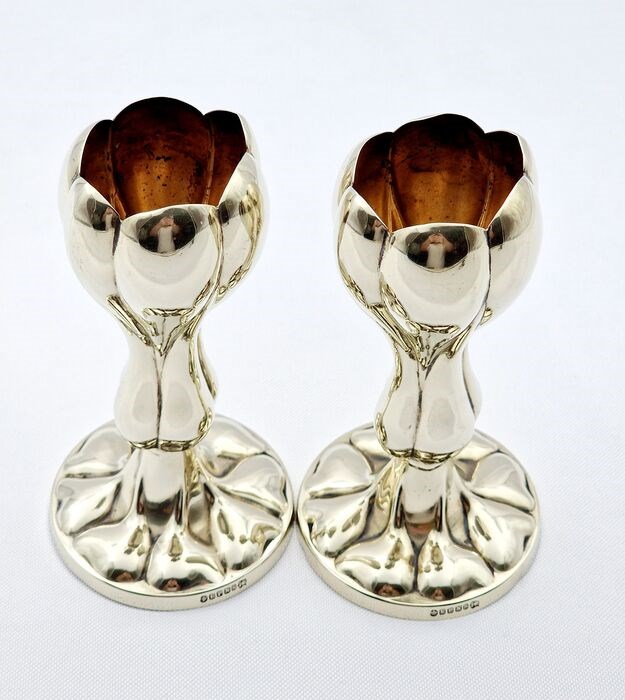Mooie paar vaas in bloemvorm en verguld, gemaakt in Engeland aan het einde van de 19e eeuw