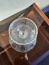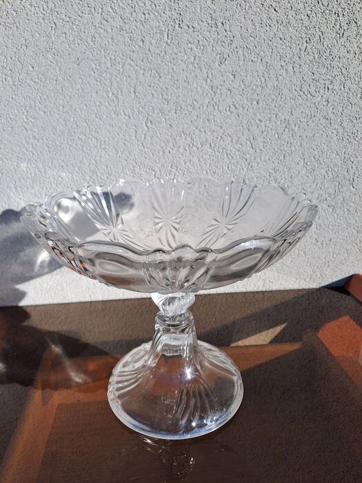Verkoopt deze zeer mooie beker op voet in gegoten persglas van de beroemde fabrikant van Val Saint-Lambert. Je kunt het gebruiken als compote of als fruitschaal. Het is in zeer goede vintage staat. Voordelige prijs voor verzending door heel Europa. Aarzel niet om mijn andere objecten van deze tijd te raadplegen