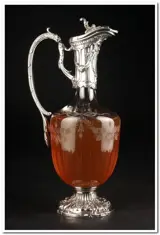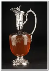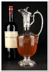 Jugendstil wijnkaraf. Verzilverde zetting. Met de hand gegraveerd glas. Frankrijk, Parijs eind 19e eeuw. Victor Saglier-studio. Heel goede staat.
