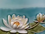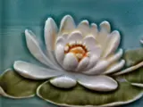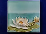 Prachtige art nouveau tegel (14,6 x 14,6 cm) met daarop een waterlelie gemaakt bij Villeroy & Boch Metlach (VBM) in Duitsland.