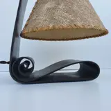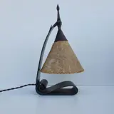 Zeldzame compleet originele amsterdamse school tafellamp uit het eerste sieratelier van W.H.. Gispen aan de Coolsestraat, Rotterdam omstreeks 1916, 1917. Voorzien van zijn kenmerkende walshuid. Lamp heeft nog de originele kap, fitting, bakelieten knipschakelaar en stekker.