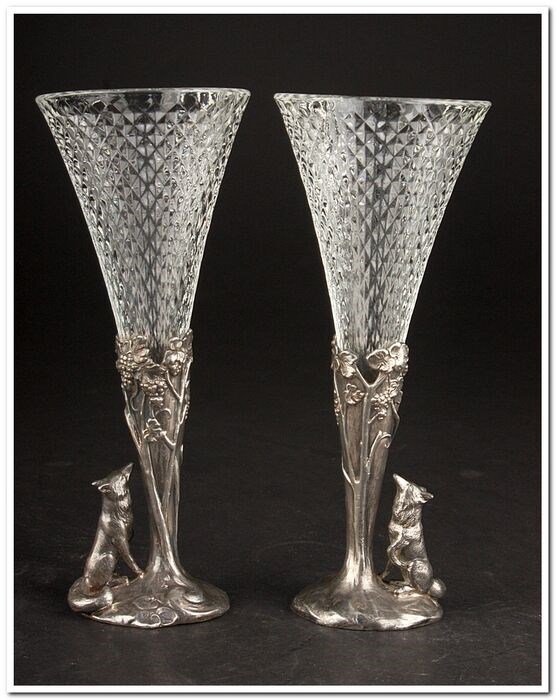Een paar Art Nouveau vazen van het label WMF. Allemaal origineel. Duitsland rond 1900. Heel goede staat.