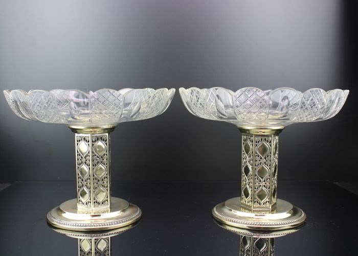 Art Nouveau paar florale bloem- of fruitschalen centerpieces van WMF.
