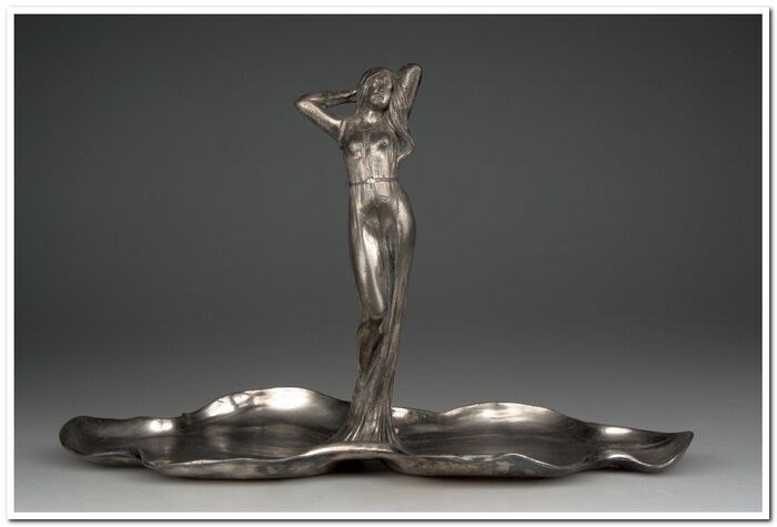 Verzilverd dienblad in art nouveau-stijl van het label WMF. Duitsland rond 1900. Goede staat.