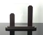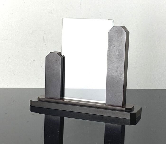 Prachtig en zeldzaam fotokadertje met een mooie Art Deco design en gemaakt van bruin Bakeliet. Het kadertje meet 19x5,5x1cm aan de basis en 15,5cm in totale hoogte. De 2 glazen plaatjes meten 14x9cm waarvan het voorste geslepen is aan de randen. Het Bakeliet is in goede originele staat (geen barstjes, geen chipjes, geen restauraties) met sporen van ouderdom en gebruik. Er zijn sporen van gebruik aan het glas (zie foto’s voor details). Gewicht ongeveer 470g.