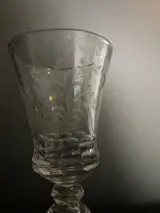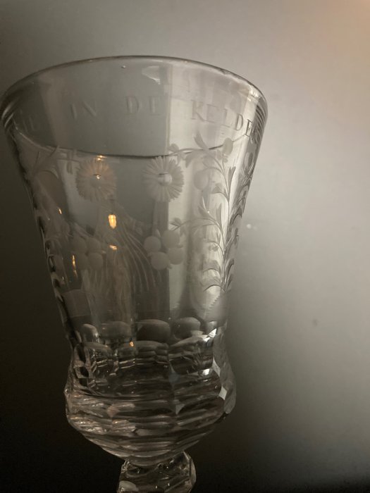 Glas en gravering zijn in mooie staat (voetje vertoont een oudere herstelling), zie foto’s voor een eigen indruk.
