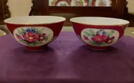 Een paar Russische keizerlijke Bourgondische porseleinen kom met bloemmotieven Fabrik Gardner Moskou 19e eeuw-ZELDZAAM