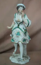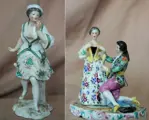 Een vrouwenfiguur en een vrijend stel, beide in delicaat porselein, met de hand beschilderd op Meissen-modellen. Midden 20e eeuw met Samson Meissen markeringen. Ze vertonen kleine fouten die op de foto's worden weergegeven (vingers)