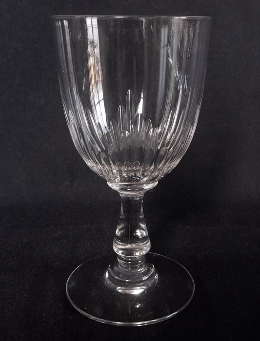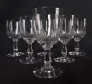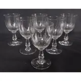 Set van 6 Baccarat kristallen wijnglazen, model Jeux d'Orgues met holle ribben, prismasteel en knop.