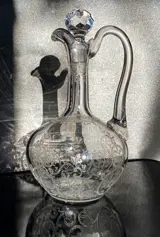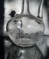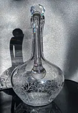 Glanzende gebloemde likeurkaraf in transparant gegraveerd