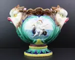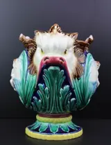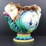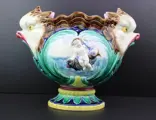 Antieke majolica vissenkoppen bloempot plantenbak.