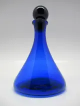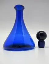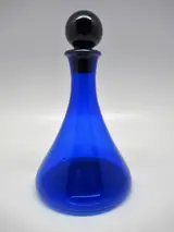 Een prachtig Bristol blauw loodglazen scheepskaraf met originele stopper. Het karaf bevindt zich in een prachtige staat, geen chip of breuk, stopper past goed, heeft een nerf, welke bij de productie gevormd is. Het karaf heeft een hoogte van 23 centimeter (inclusief stopper) diameter buik van de fles is 13.8 cm, de schenkrand heeft een diameter van 4.5 cm. Onderzijde karaf is kenmerkend ruw. Graag verwijs ik u naar de foto's, welke mede onderdeel van de beschrijving zijn.