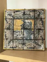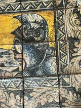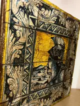 Geschilderd op tegels (16) van S. Caltagirone. 10x10 tegels gelijmd op hout. Gesigneerd S. Caltagirone