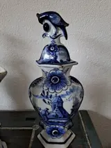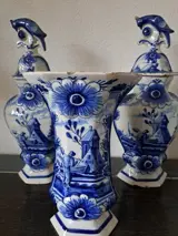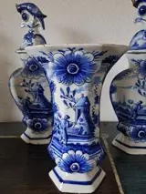 Prachtig 18e eeuws Delfts aardewefk kaststel, kastvazen.