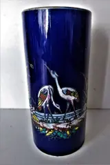 Een rolvaasmet een cloisonnétafereel met ooievaars in een waterplas met riet .