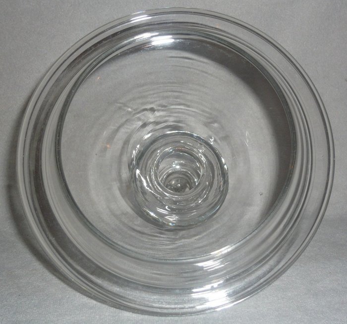 Prachtige drageoir in mondgeblazen kleurloos glas. bovenaan is de knop geslepen. Weggeslepen pontil merk op de bodem. Origineel deksel. Zeer decoratief in elk interieur.