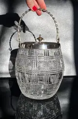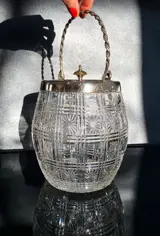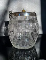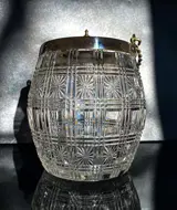 Charmante koektrommel in wit kristal met gestreept en stergeslepen ontwerp in de smaak van Baccarat/Portieux. Prachtig en zwaar. Een prachtig stuk voor servies en decoratie.