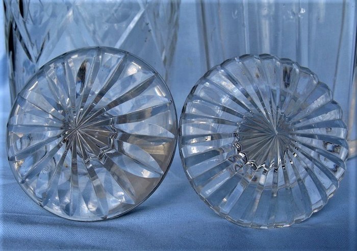 De andere gesneden met ruiten en uitgeholde cirkels is 24,5 cm hoog, met een maximale diameter van 11 cm.