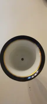 In goede staat, enkele herschildersporen op de gouden strepen rond de basis.