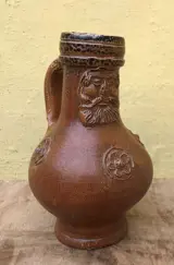 Mooi baardman kruikjeFrechen2de helft 16de eeuw- heeft een goed uitgevoerde restauratie , is gebroken geweest , de kruik is grotendeels compleet - Keulen - afkomstig uit een oude collectie - geen bodemvondst -verzekerde verzending