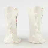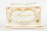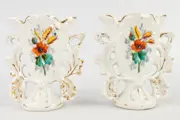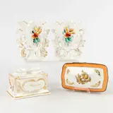 Een mooie 19e eeuwse collectie Limoges & Vieux Paris porselein, handgemaakt en handgeschilderd. Deze collectie bevat 2 kleine bruidsvazen, een juwelendoos en een peper- en zoutstel. Allen gemarekeerd of gesigneerd.