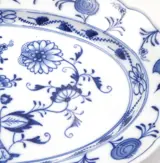 Het uienmotief stelt eigenlijk geen uien voor, maar toont eerder granaatappel, perzik, bamboestok en tere bloemen. Meissen-borden zijn fijn servies, met de hand beschilderd om elk servies perfect aan te vullen.