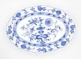 Het "New Cutout"-vormige bord met de decoratie "Onion Pattern" in kobaltblauw is geïnspireerd op Oost-Aziatische decoraties.