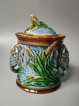 Majolica tabakspot, toegeschreven aan Onnaing, circa 1890.
