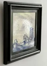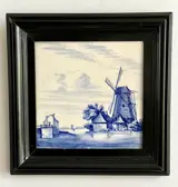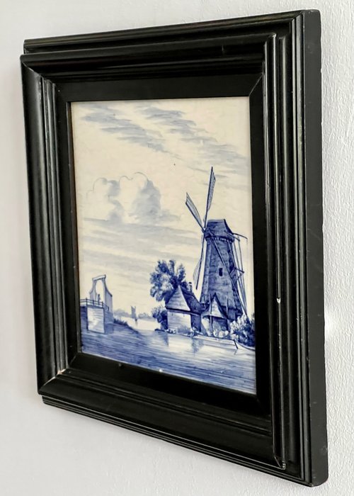 De tegel is geplaatst in een zwart houten lijst (buitenmaat 30 x 30 cm). De tegel is goed uitneembaar, waardoor te zie is dat de tegel in goede staat verkeert; zie foto's, die deel uitmaken van de omschrijving.