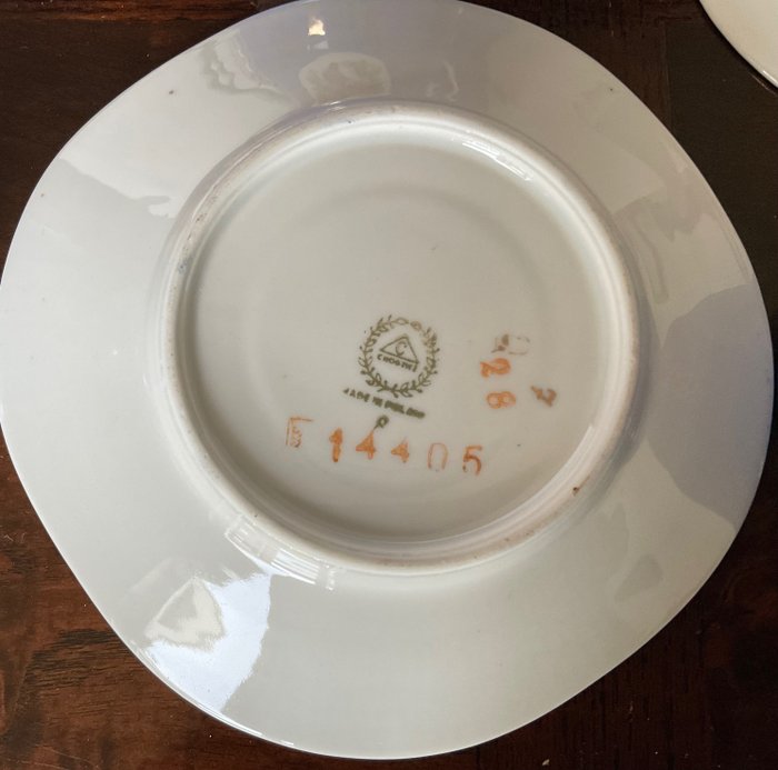 Porseleinen serviesdelen in kobaltblauw met gouden accenten en een meerkleurig medaillonnetje naar Fragonard, gemaakt bij Chodziez, Polen.
