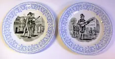 Eind 1800 - Lot van vier decoratieve wandborden - Geproduceerd door Richard Milano Ceramic Company - Prachtige transferdecoraties uit de Musica-serie, drie onderwerpen zoals getoond op de foto's - in goede algemene staat, zonder barsten of breuken behalve een chip aan de rand van twee platen, documenten van foto's.