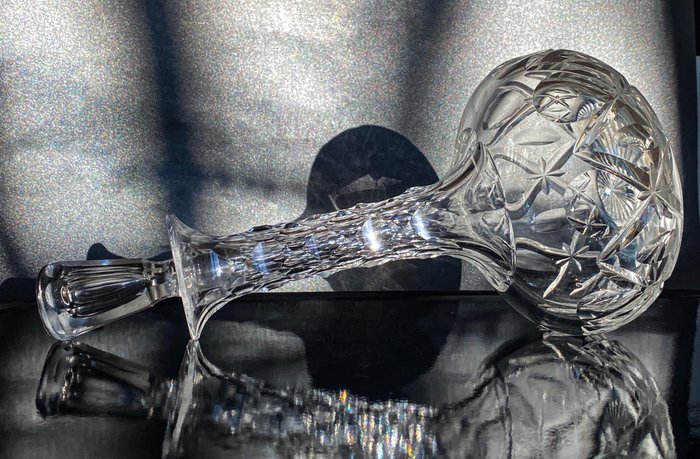 Lambert. De karaf is vertegenwoordigd in zwaar kristal en rijkelijk versierd. Het is in uitstekende staat, met normale ouderdomssporen, deksel hoort er niet origineel bij. Niet ondertekend. De gemeenschappelijke snit uit catalogi van St.Louis en VSL zijn bijgevoegd.