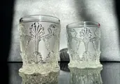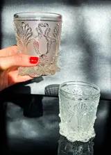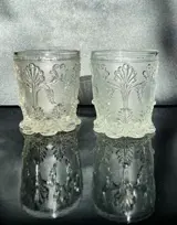 Extravagant lot van 2 kristallen glazen uit St. Louis in model « Sablée Rocaille ». Gepresenteerd in neogotische stijl. De glazen kunnen geschikt zijn voor cognac, whisky of cocktails, kunnen als vazen gebruikt worden. Het afgebeelde model staat vermeld in de gemeenschappelijke catalogus van Baccarat en St. Louis van 1840. Ze werden geproduceerd in verschillende kleuren: transparant, amber en opaalkristal.