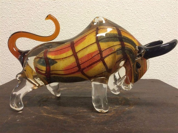 Mooi beeld van glas, een stier, werkelijk prachtig glasblaas-smelt werk.