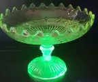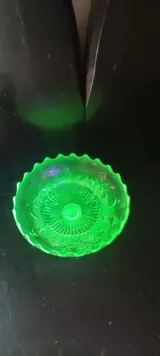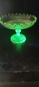 Aantrekkelijke uraline (uranium) gele tazza-beker die reageert op zwart licht