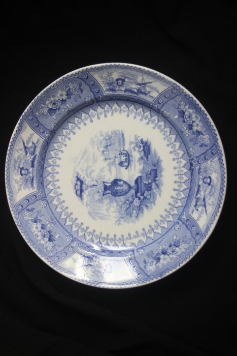 Uitzonderlijke set van 6 antieke dinerborden bedrukt door transfer: vervaardigd door T. Mayer in Staffordshire in Engeland, rond 1830.