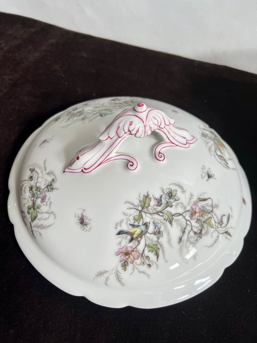 Thomassin Frerés, Parijs - Fabulous Old Terrine, in fijn porselein, met handbeschilderde handvatten Overvloedige Parijse patroondecoratie met vogels. Fianles XIX eeuw, in goede staat en gebruik.-- Collectors item