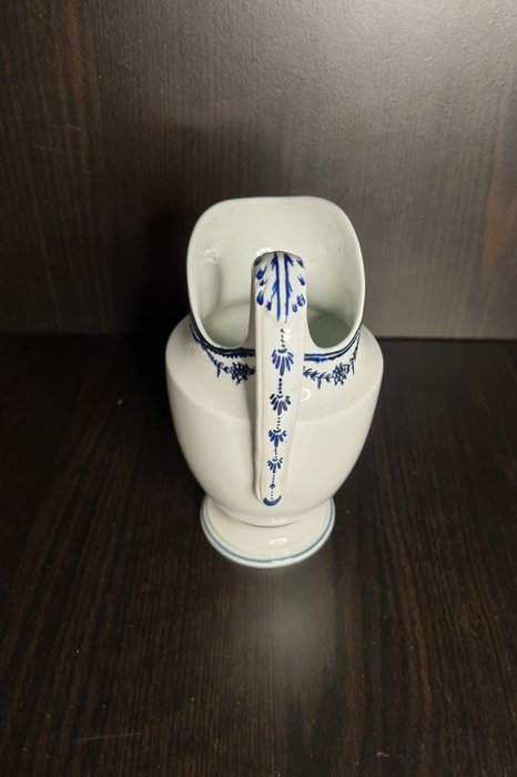 Melkkannetje van Doorniks porselein, 18de-19de eeuw Blauwe decoratie op een witte achtergrond genaamd "met een bloemenslinger".